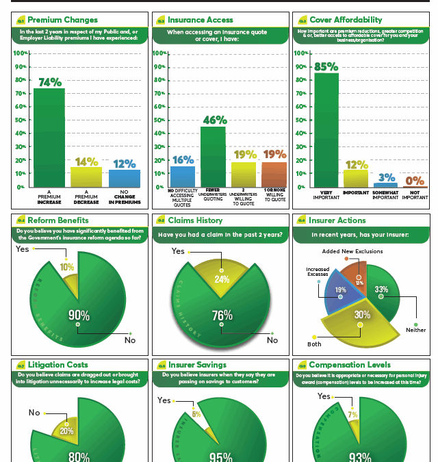 · Almost three quarters of respondents have seen their premium rise in the last two years, notwithstanding recent government reforms. It should also be noted that these increases are occurring at a time when the volume of claims is reducing, awards are coming down and insurance companies are making record profits.[1]